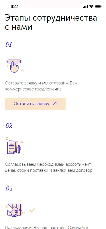 На старте была проведена качественная подготовка. Мы попросили клиента подготовить референсы с описанием по каждому разделу сайта (что нравится/не нравится), запросили максимально полную информацию по направлению продаж, предпочтениям по цветовой гамме, пожеланиям по общему восприятию лендинга. Благодаря этому уже на стадии прототипа мы представляли, какой результат ожидаем получить в финале.